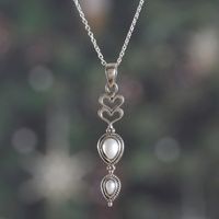 Classic Cream and Grey Cultured Pearl Heart Pendant Necklace 'Pearly Romance' Item ID: 2671781155