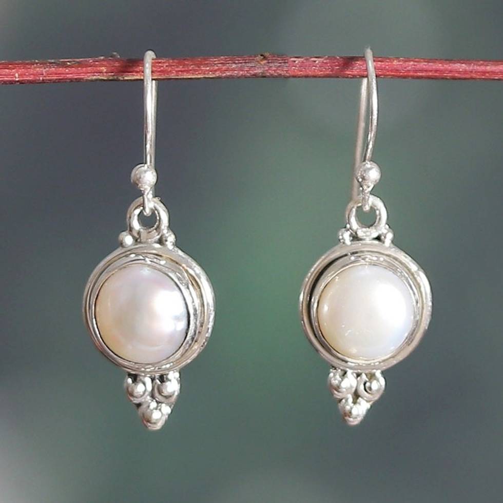 Classic Cultured Pearl and Sterling Silver Dangle Earrings 'Classic Ocean' Item ID: 2671625641