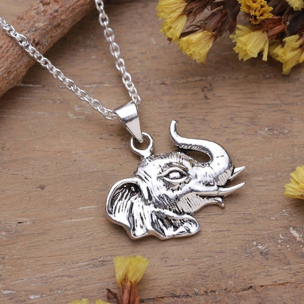 Classic Elephant-Shaped Sterling Silver Pendant Necklace 'Elephant Divinity' Item ID: 2671781690