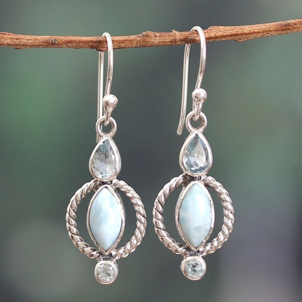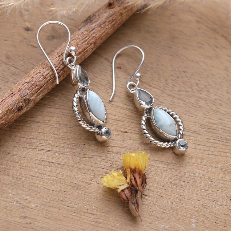 Classic Faceted Blue Topaz and Larimar Dangle Earrings 'Blue Core' Item ID: 2671781596