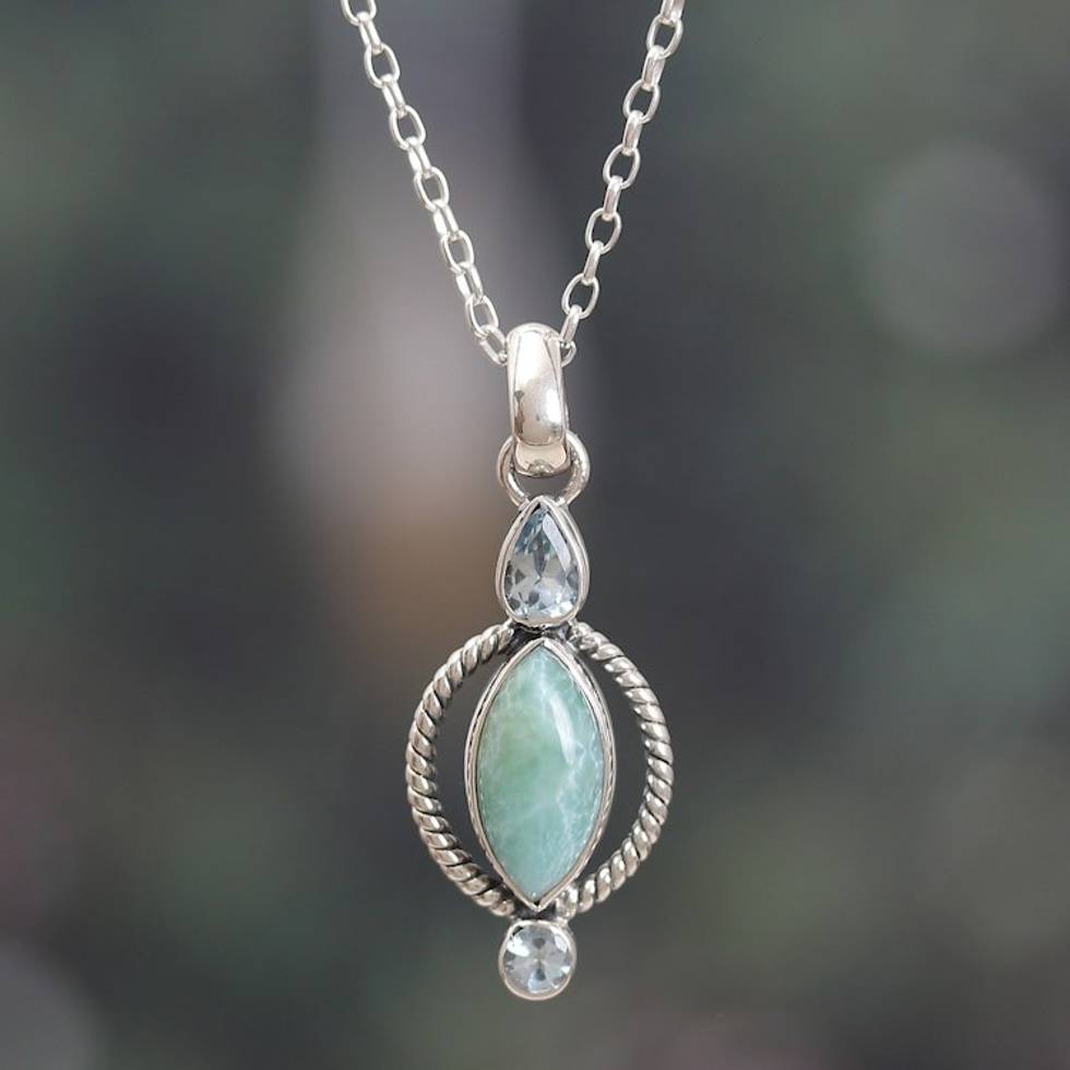 Classic Faceted Blue Topaz and Larimar Pendant Necklace 'Blue Core' Item ID: 2671625194