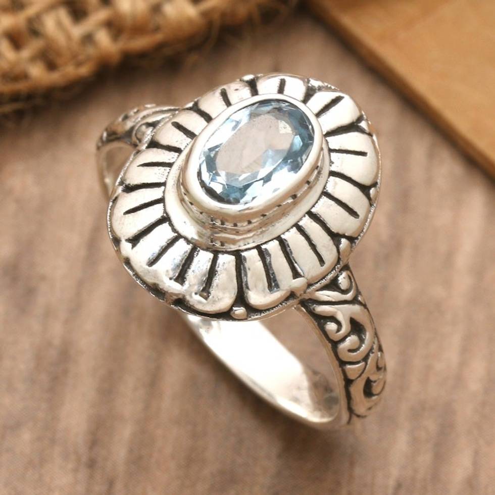 Classic Floral Sterling Silver and Blue Topaz Cocktail Ring 'Ocean Bloom' Item ID: 2671765470