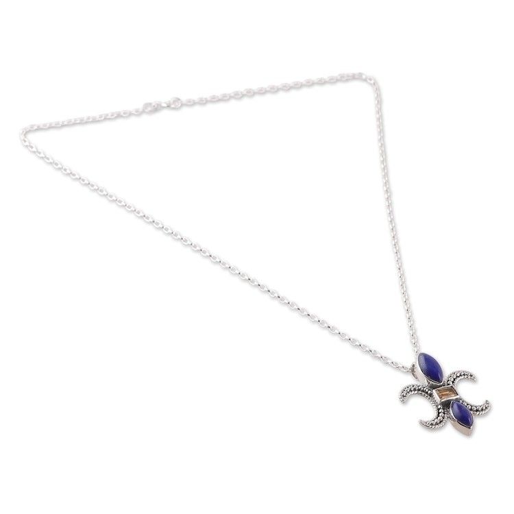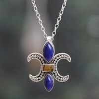 Classic Lapis Lazuli and Citrine Pendant Necklace from India 'Regal Lineage' Item ID: 2671783245