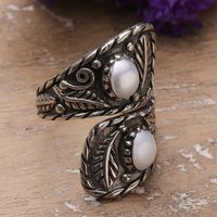 Classic Leafy and Floral Cream Cultured Pearl Wrap Ring 'Call from the Ocean' Item ID: 2671781866