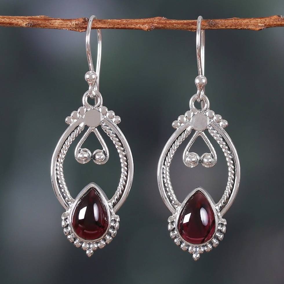 Classic Natural Garnet and Sterling Silver Dangle Earrings 'Passion Manor' Item ID: 2671781799