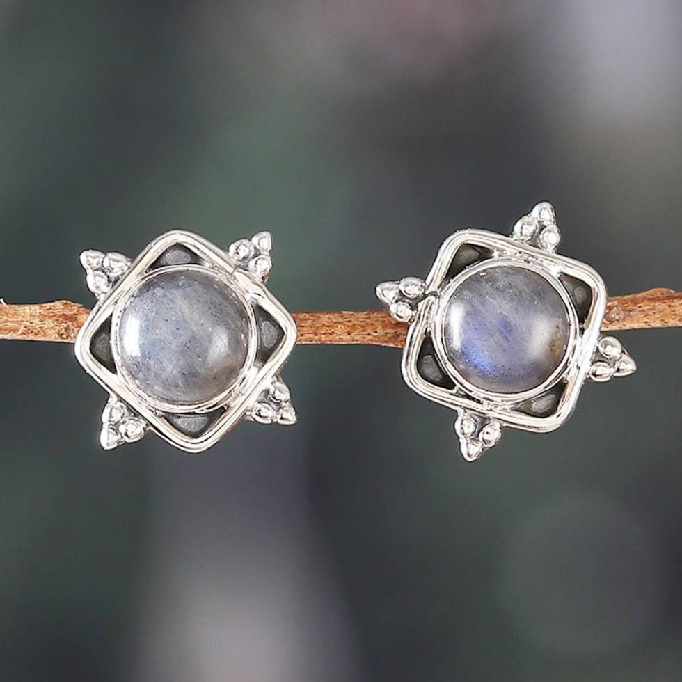 Classic Natural Labradorite Button Earrings Crafted in India 'Mystique Marchioness' Item ID: 2671625383