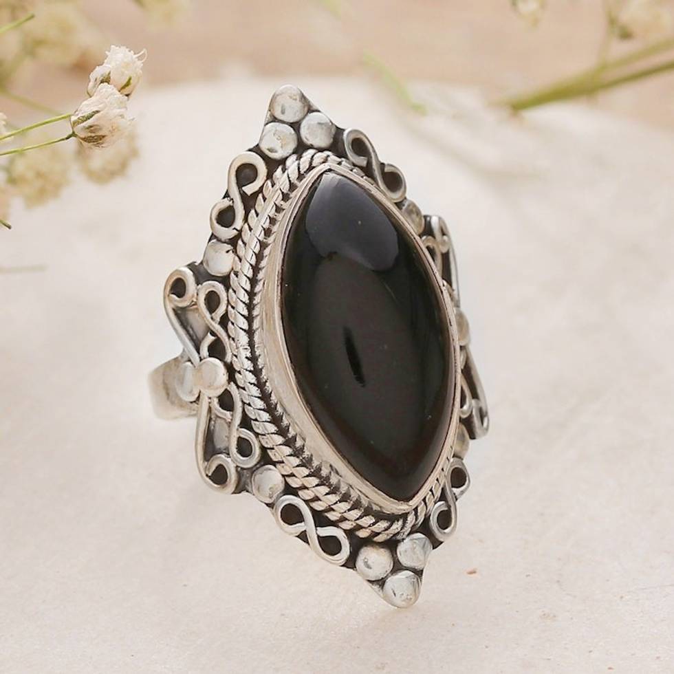 Classic Onyx Cabochon and Sterling Silver Cocktail Ring 'Midnight Nobility' Item ID: 2671667549