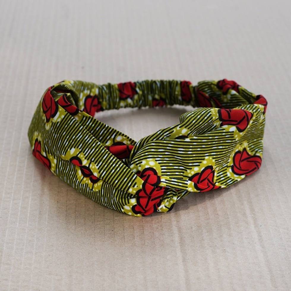 Classic Patterned Chartreuse Green Elastic Cotton Headband 'Spring Obaapa' Item ID: 2671805025