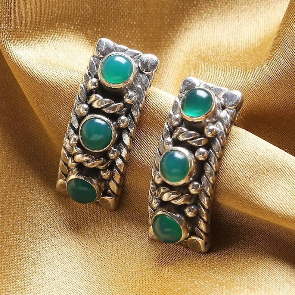 these earrings are delicate and beautifully made. The pop of green and this unusual setting really makes them stand out. Love them