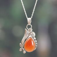 Classic Polished Sterling Silver Carnelian Pendant Necklace 'Grand Sunset' Item ID: 2671782967