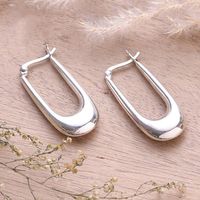 Classic Polished Sterling Silver Hoop Earrings from India 'Modern Radiance' Item ID: 2671623322
