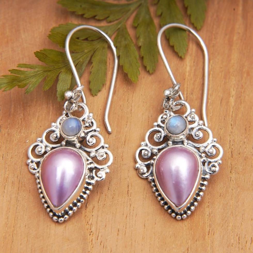 Classic Rainbow Moonstone and Cultured Pearl Dangle Earrings 'Palatial Pearls' Item ID: 2669923243