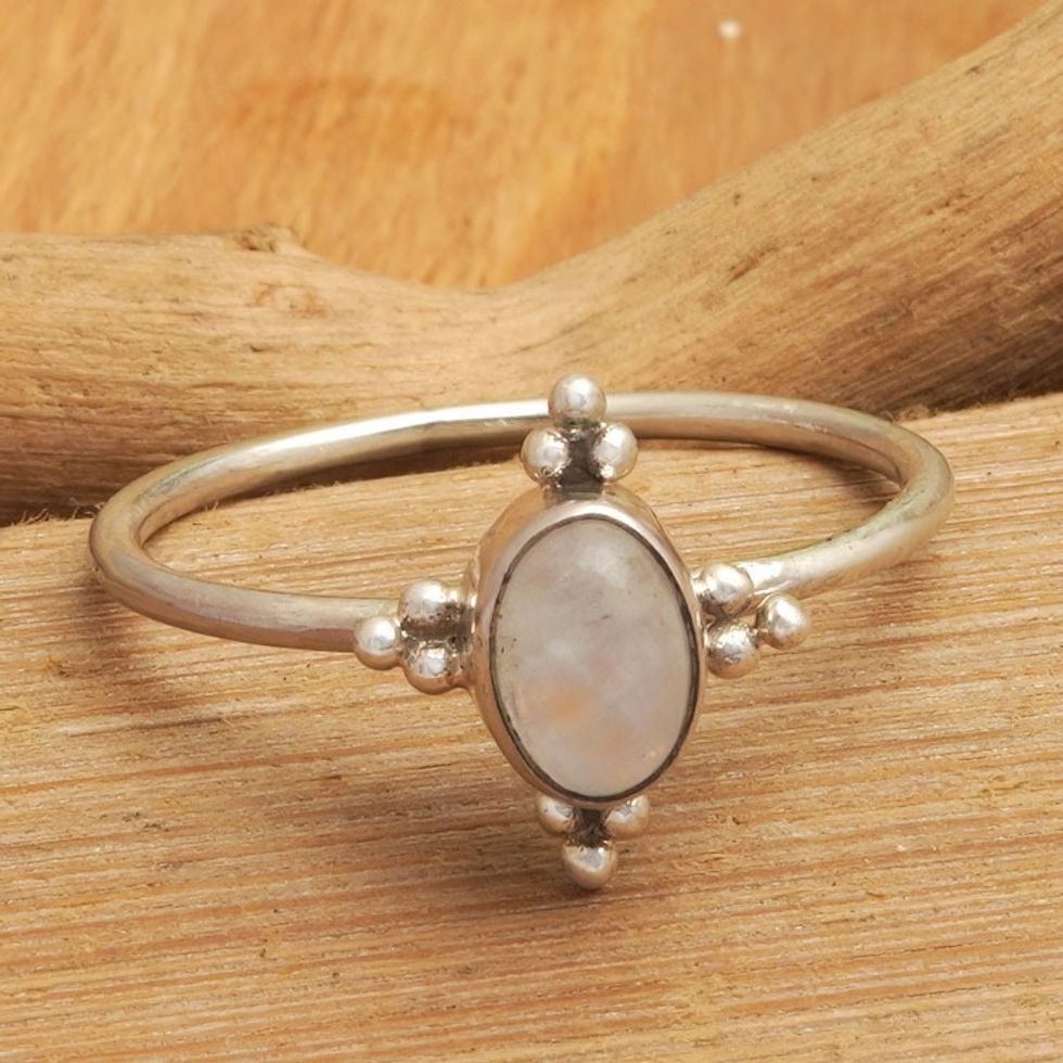 Classic Rainbow Moonstone Single Stone Ring Crafted in Bali 'My Harmony' Item ID: 2669921429