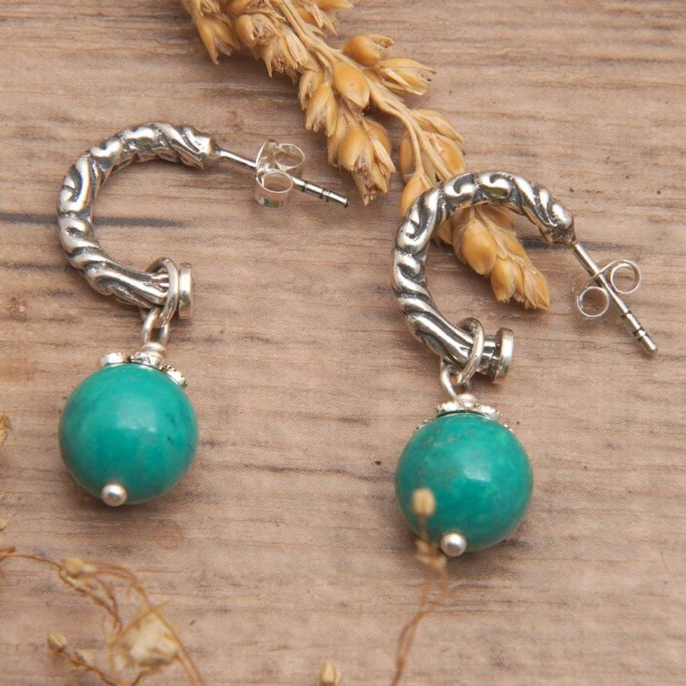 Classic Reconstituted Turquoise Half-Hoop Dangle Earrings 'Heal the World' Item ID: 2671764559