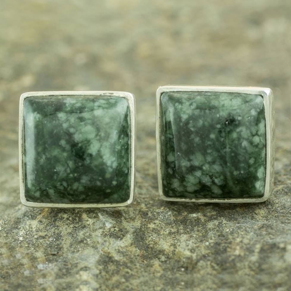 Classic Silver Button Earrings with Green Maya Jade 'Forest Mystique' Item ID: 2671777452