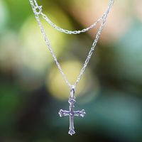 "When life starts to look gloomy, hope is the only thing that can make the sky bright again. Artisan Gede Agus Mahardika of Bali creates this sterling silver necklace accented with a classic cross pendant, whose divine allure sends you a message of strength and resilience."