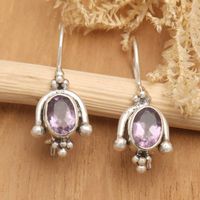 Classic Sterling Silver Drop Earrings with Amethyst Gems 'Wise Madam' Item ID: 2676659726