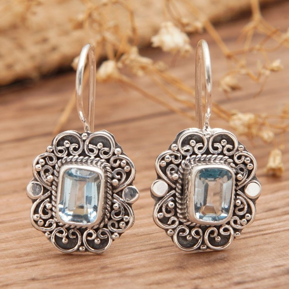 Classic Sterling Silver Drop Earrings with Blue Topaz Jewels 'Palace of the Loyal' Item ID: 2671764830