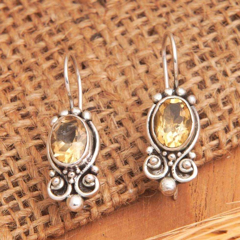 Classic Sterling Silver Drop Earrings with Citrine Jewels 'Bliss Marchioness' Item ID: 2671764813