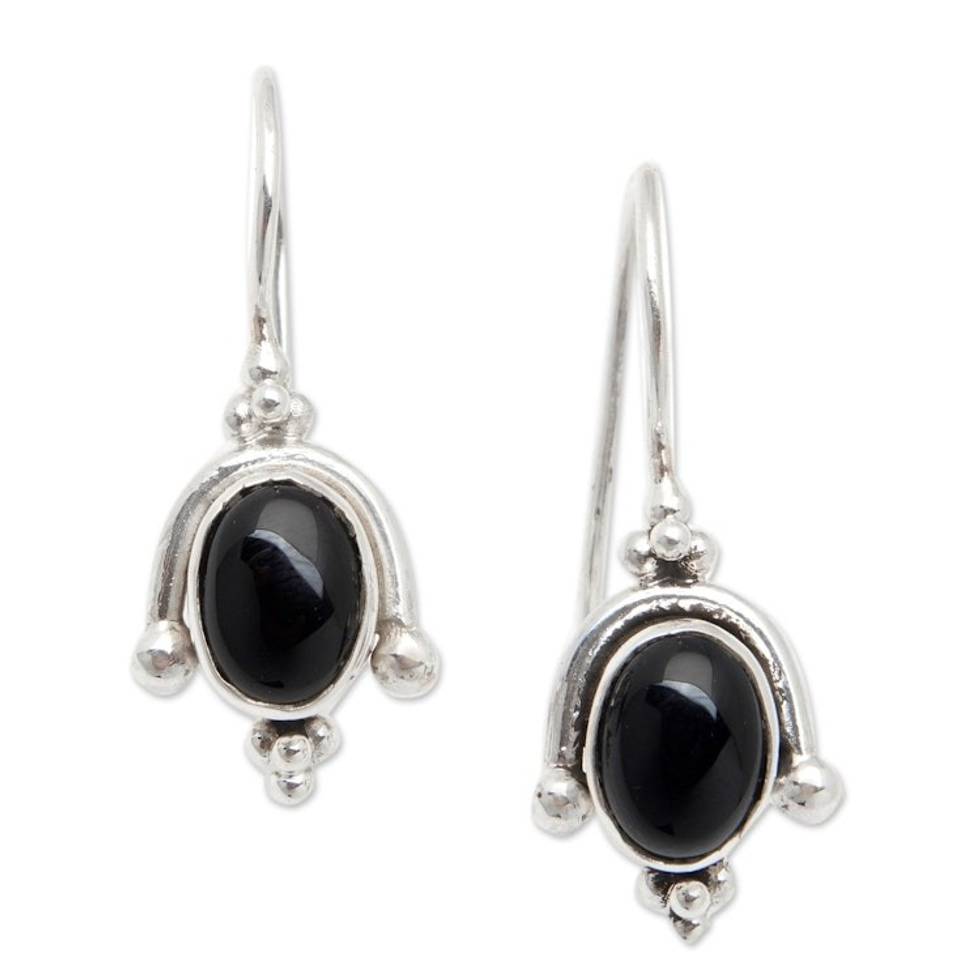 Classic Sterling Silver Drop Earrings with Onyx Cabochons 'Protective Madam' Item ID: 2671764629
