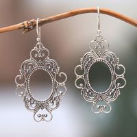Classic Sterling Silver Filigree Dangle Earrings from Bali 'Magic Mirror' Item ID: 2671764737