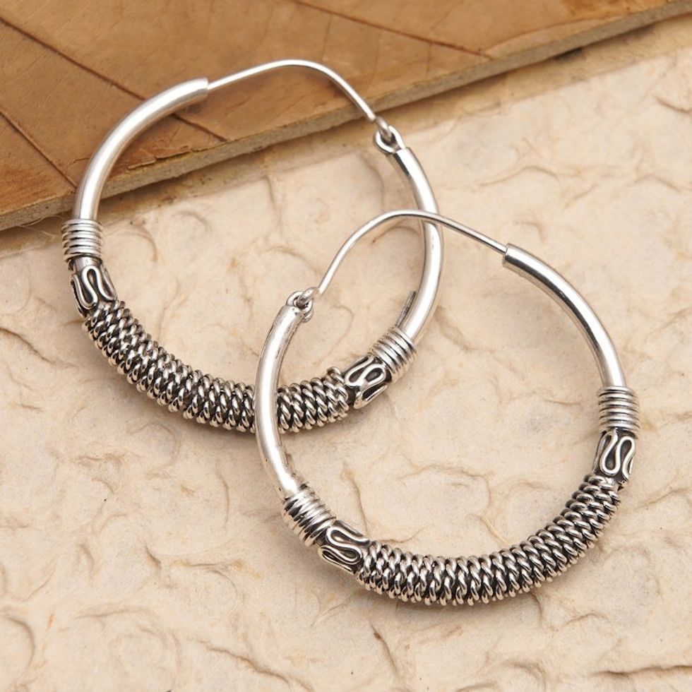 Classic Sterling Silver Hoop Earrings with Braided Accents 'Braided Cycles' Item ID: 2671821157