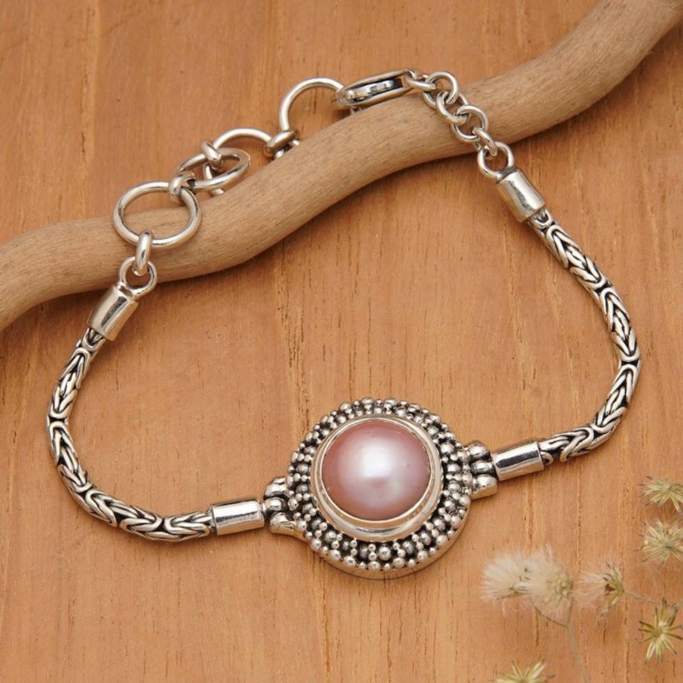 Classic Sterling Silver Pink Cultured Pearl Pendant Bracelet 'Forever Sweet' Item ID: 2671567405