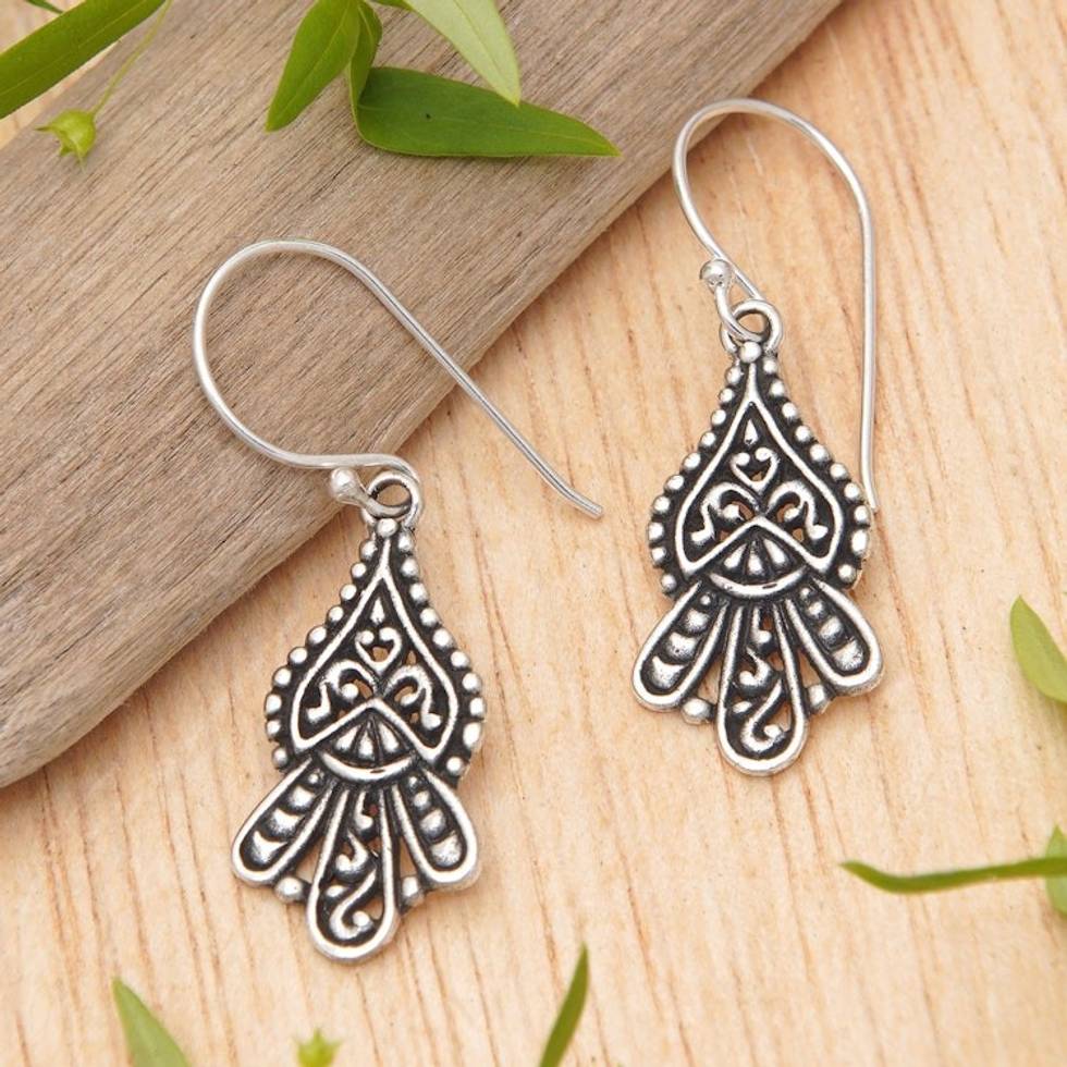 Classic Tropical Sterling Silver Dangle Earrings from Bali 'Tropical Crown' Item ID: 2671765556