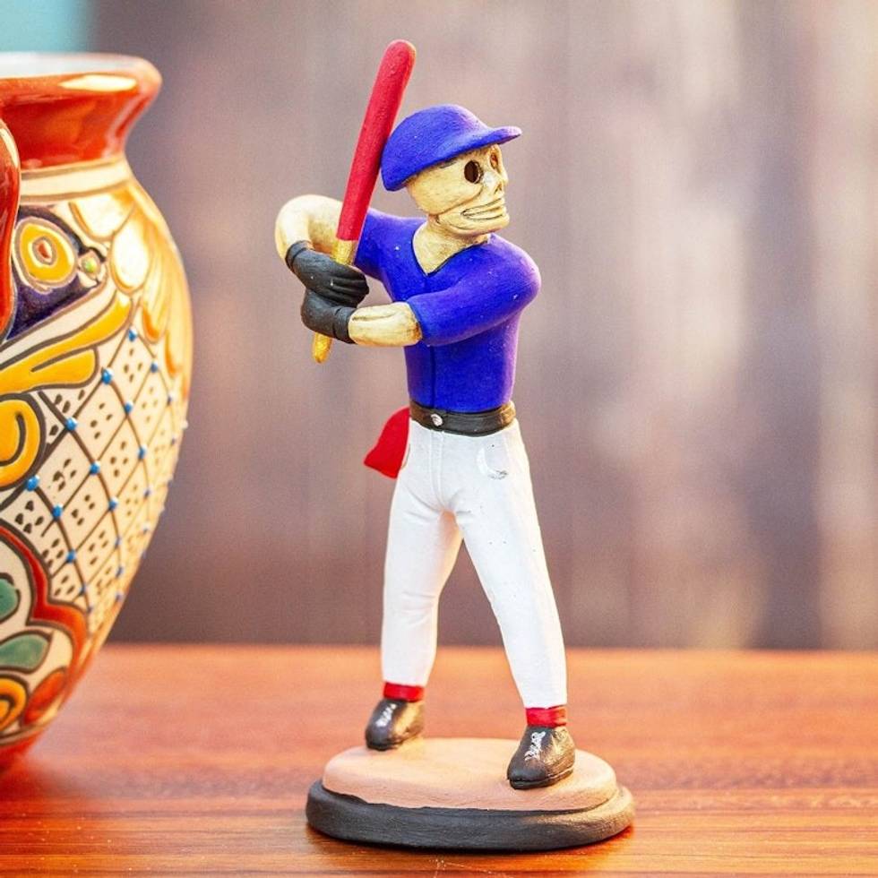 Clay Skeleton Baseball Player Sculpture 'Batter Catrin' Item ID: 2671808545