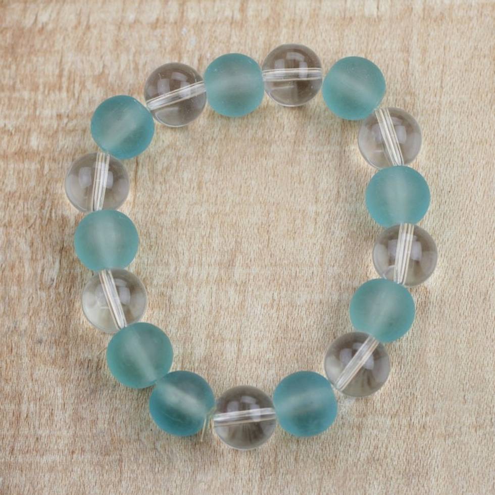 Clear and Blue Recycled Glass Beaded Stretch Bracelet 'Beautiful Ice' Item ID: 2671801027