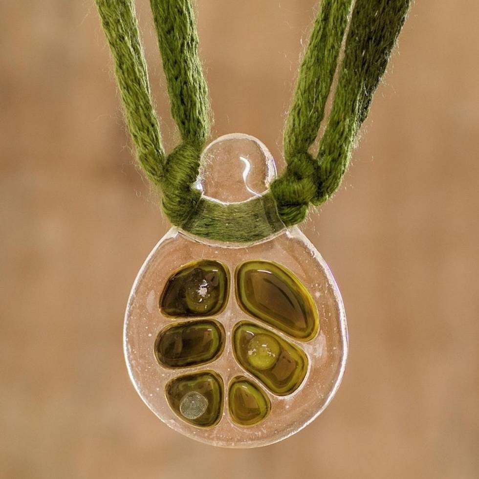 Clear Drop Shaped Glass Pendant Necklace with Braided Cord 'Green Dewdrop Leaf' Item ID: 2671626191