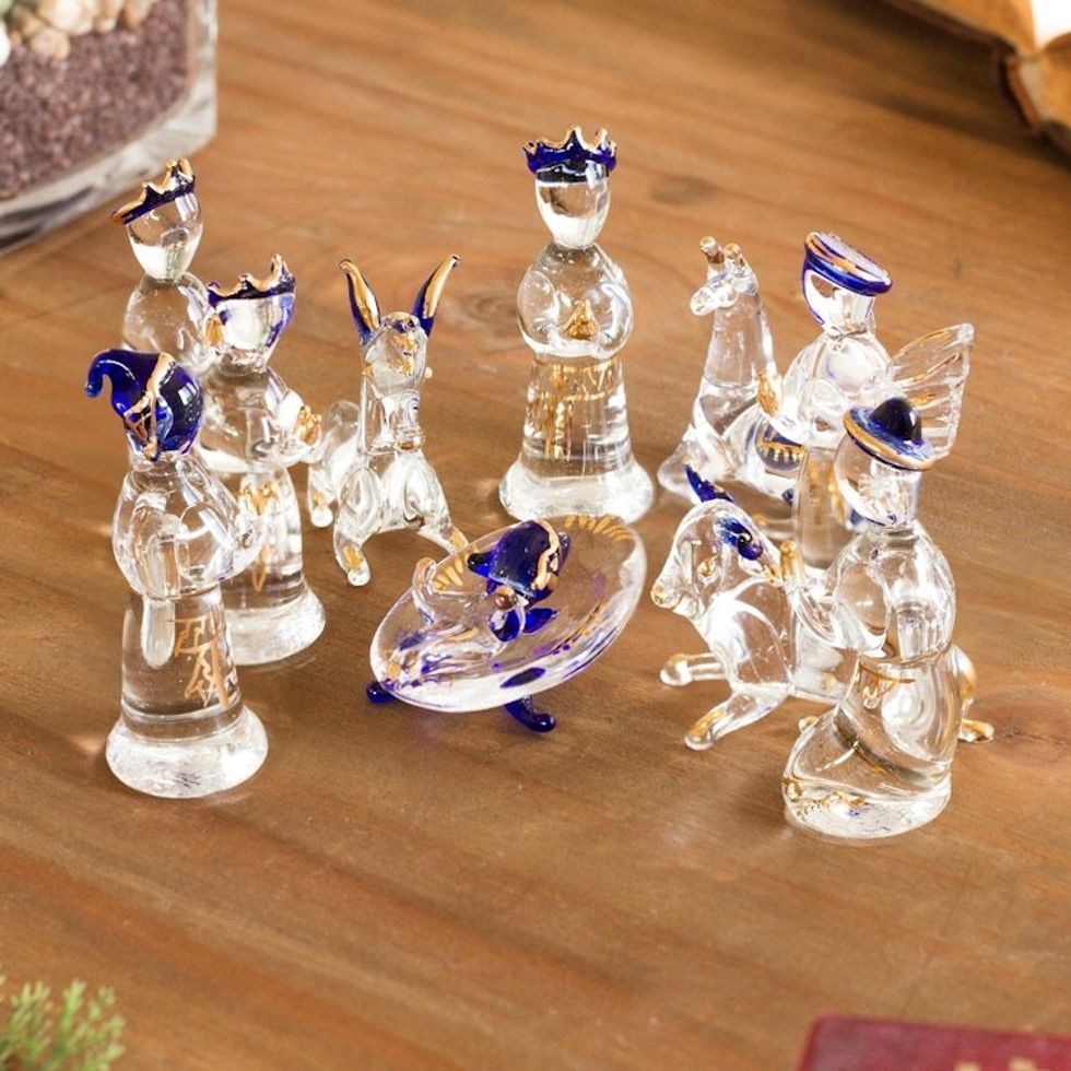 Clear Gilded Glass Nativity Scene from Peru 12 Piece 'Andean Festivity' Item ID: 2671690531
