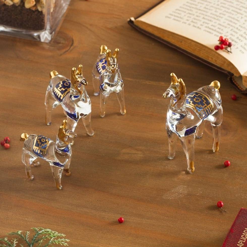 Clear Glass Gilded Llama Figurines from Peru Set of 4 'Llamas of the Andes' Item ID: 2671691623