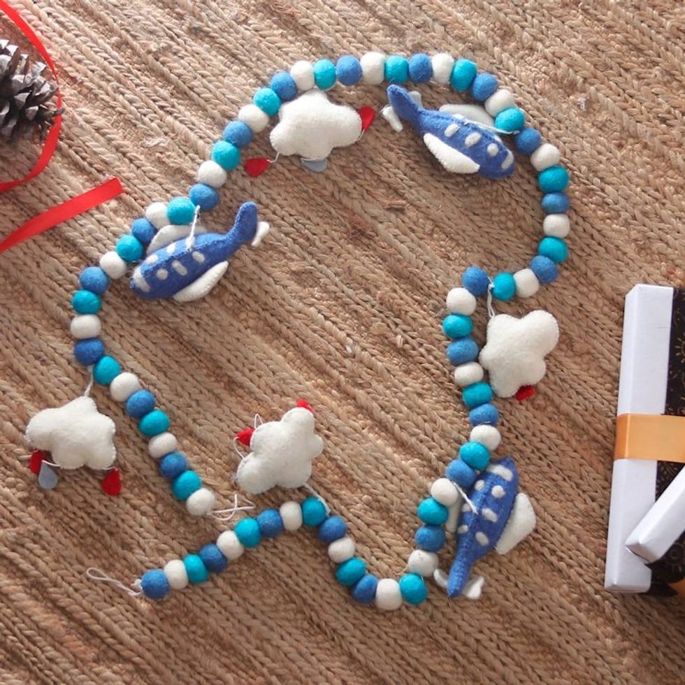 Cloud-Themed Blue and White Wool Felt Garland from India 'Sky Celebration' Item ID: 2671786982