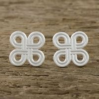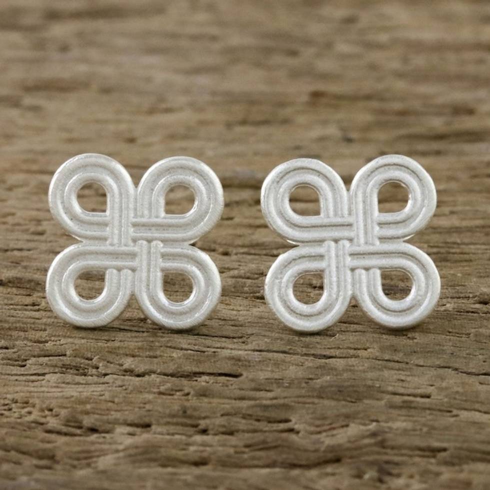 Clover-Patterned Loops Sterling Silver Stud Earrings 'Interconnected Journey' Item ID: 2671801357