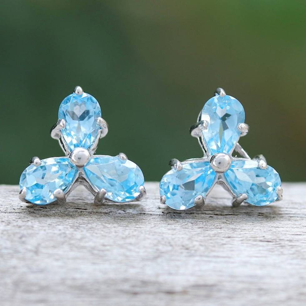 Clover-Themed Button Earrings with Two-Carat Blue Topaz Gems 'Loyalty Clover' Item ID: 2671798088