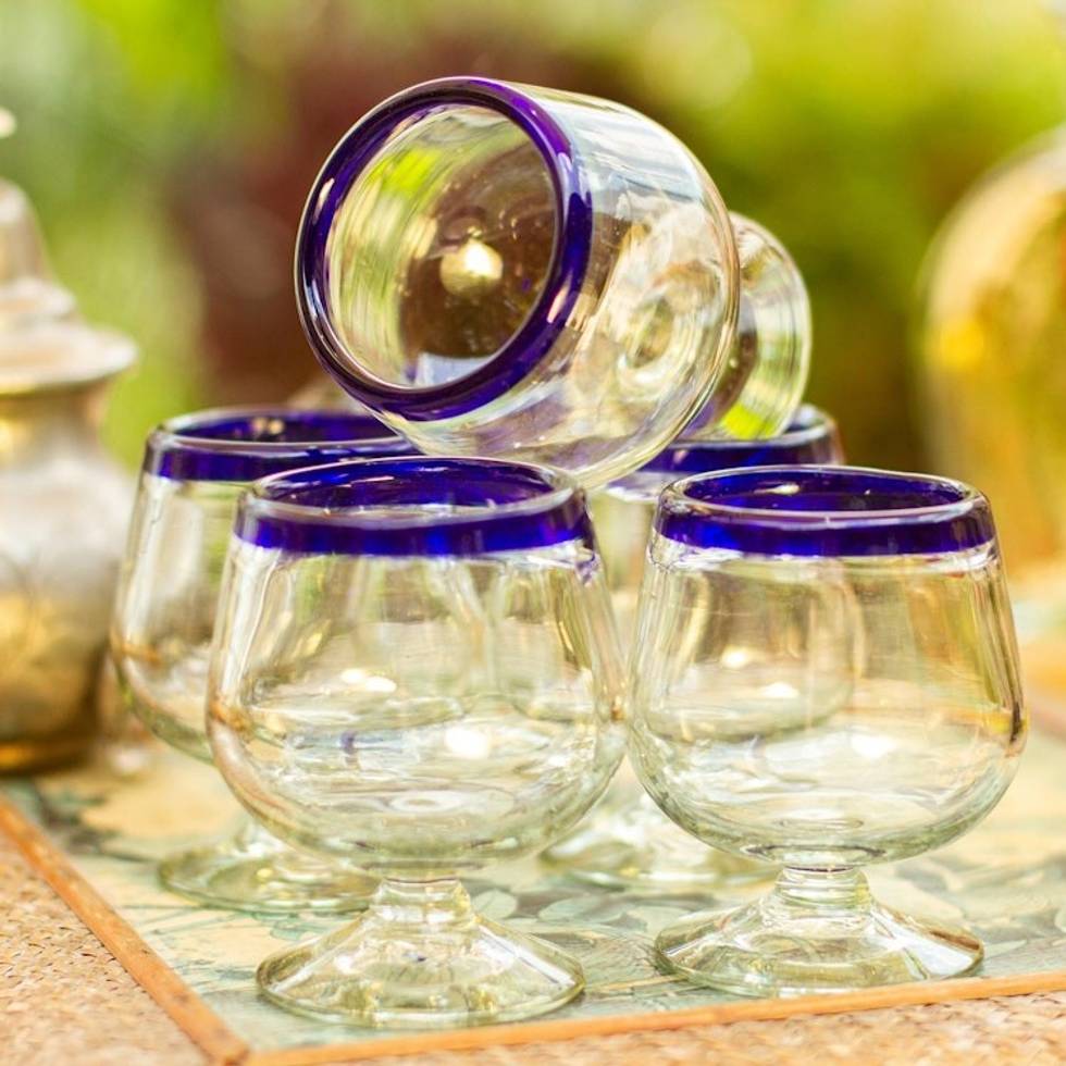 Cobalt Blue Rim Hand Blown 6 oz Tequila Glasses Set of 6 'Cobalt Kiss' Item ID: 2671808877