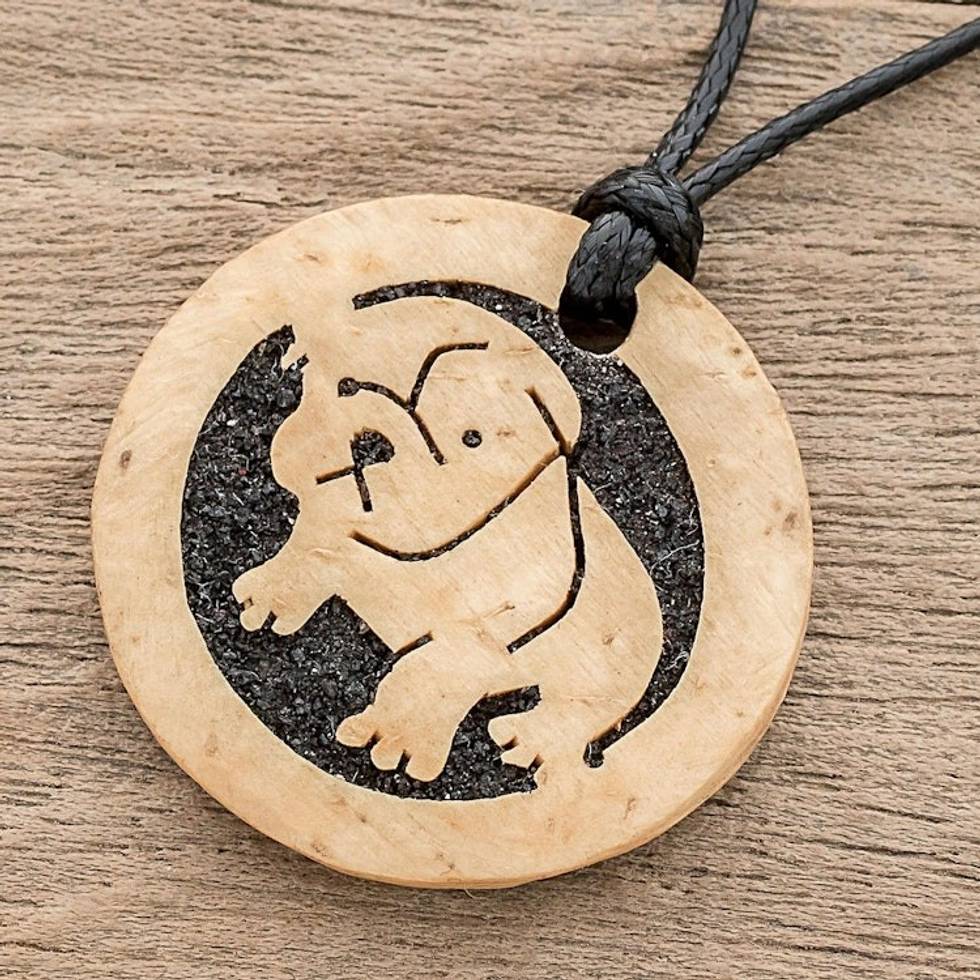 Coconut Shell and Lava Stone Bulldog Pendant Necklace 'Bulldog' Item ID: 2671777051