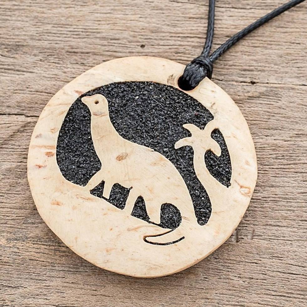 Coconut Shell and Lava Stone Diplodocus Pendant Necklace 'Diplodocus' Item ID: 2671777173
