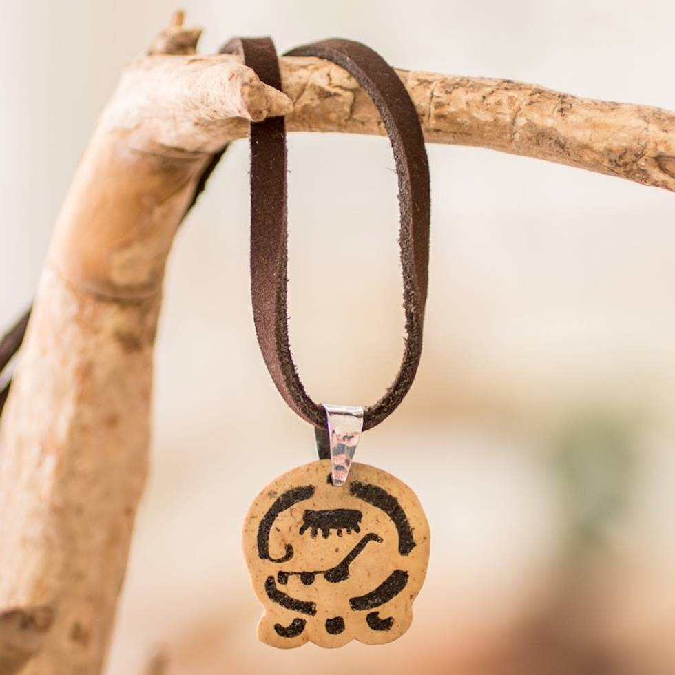 Coconut Shell and Lava Stone Kame Sign Pendant Necklace 'Inner Rebirth' Item ID: 2671769012