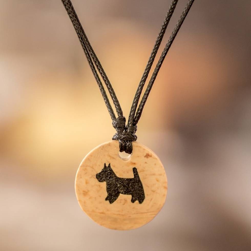 Coconut Shell and Lava Stone Schnauzer Dog Pendant Necklace 'Sweet Schnauzer' Item ID: 2671769001