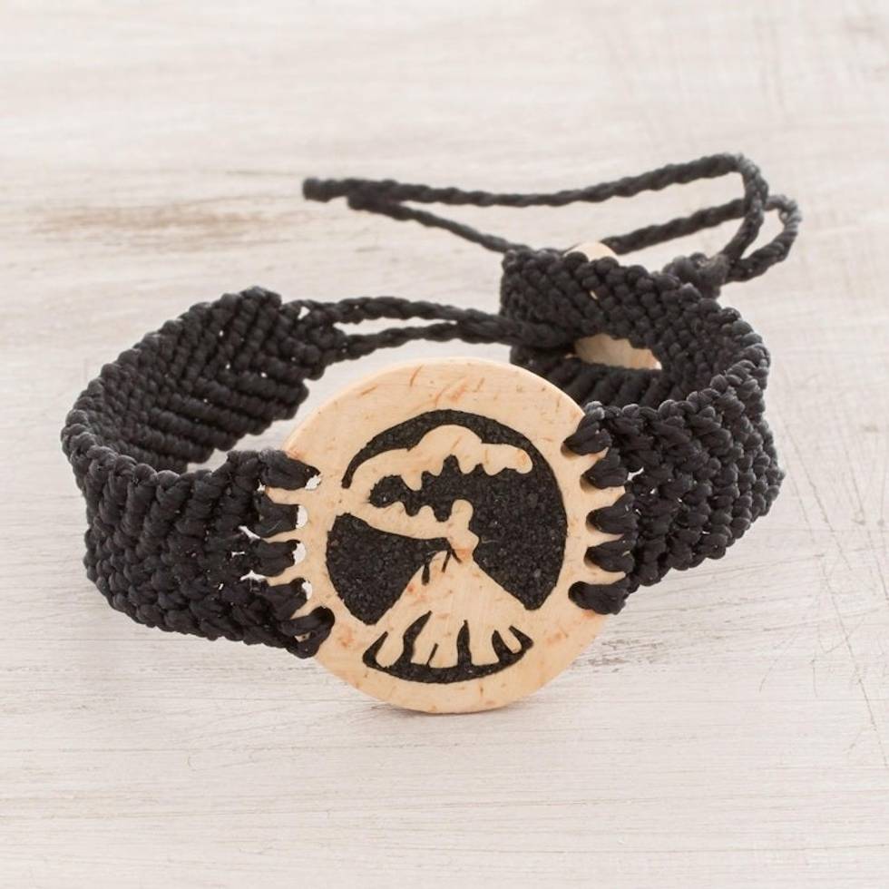 Coconut Shell and Lava Stone Volcano Pendant Bracelet 'Fiery Volcano' Item ID: 2671776996