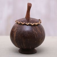 Coconut Shell Decorative Box Hand Carved in Bali 'Berry Keeper' Item ID: 2671821353