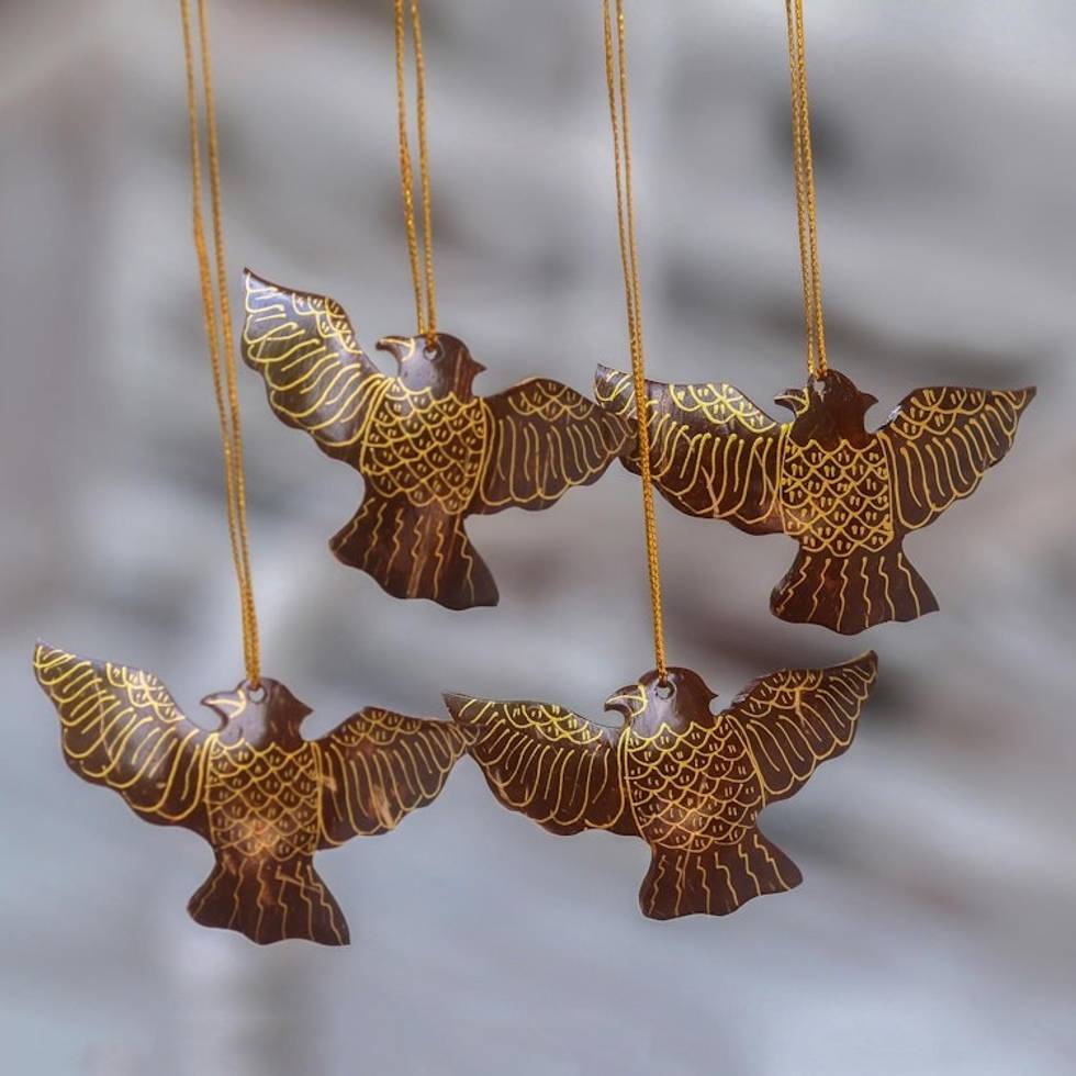 Coconut Shell Dove Ornaments from Bali Set of 4 'Sacred Doves' Item ID: 2669913253