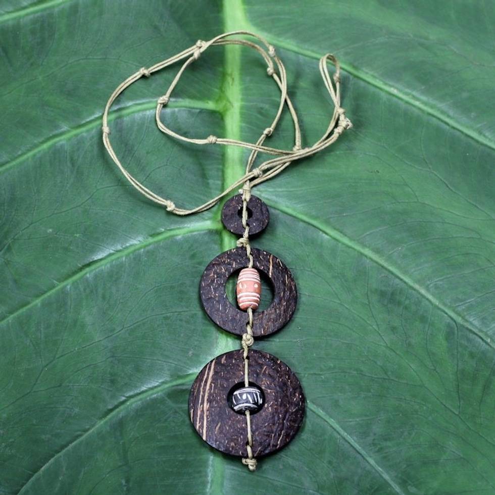 Coconut Shell Pendant Necklace 'Bold Africa' Item ID: 2671807146