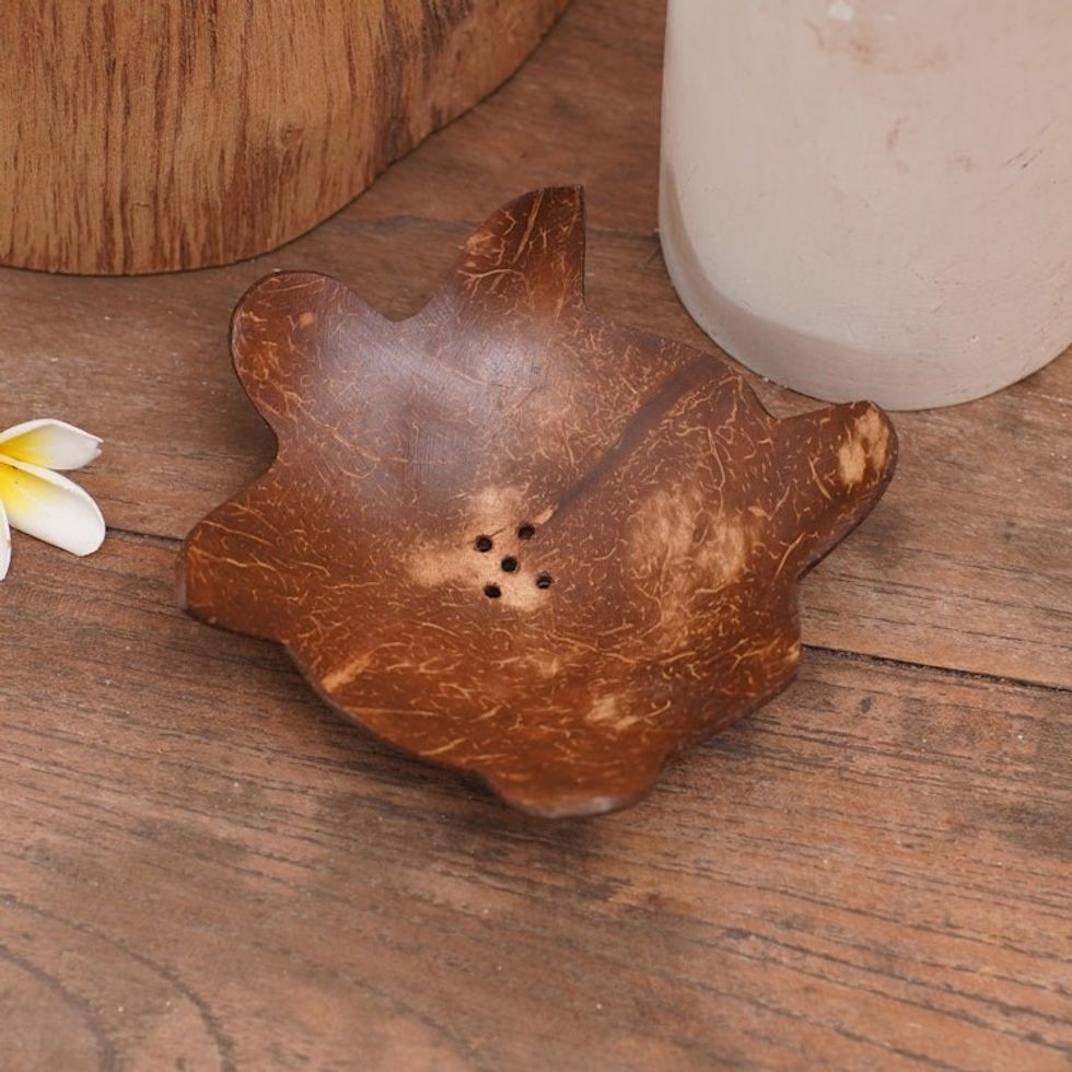 Coconut Shell Soap Dish with Turtle Motif 'Come Clean' Item ID: 2671748291