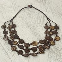 Coconut Shell Strand Necklace Handmade in Ghana 'Coconut Wave' Item ID: 2671803591