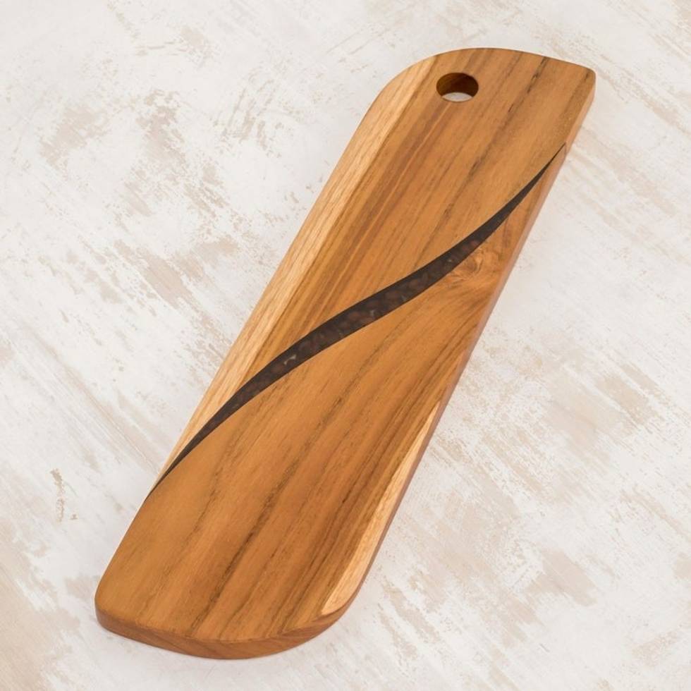 Coffee-Themed Long Teak Wood Trivet from Costa Rica 'Greet the Morning' Item ID: 2671777339