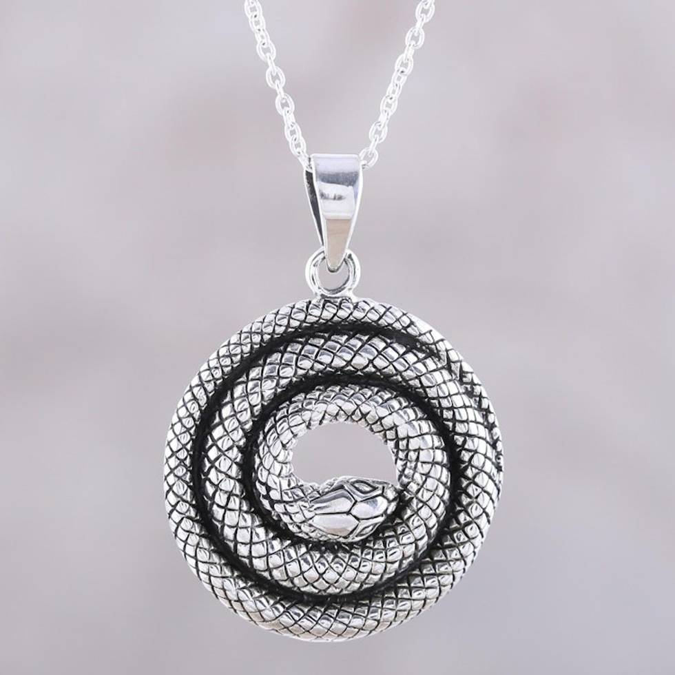 Coiled Snake Sterling Silver Pendant Necklace from India 'Sleeping Serpent' Item ID: 2669925397