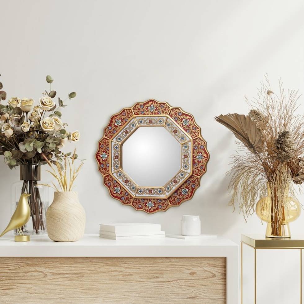 Collectible Floral Peruvian Reverse Painted Glass Mirror 'Red Star' Item ID: 2671401315